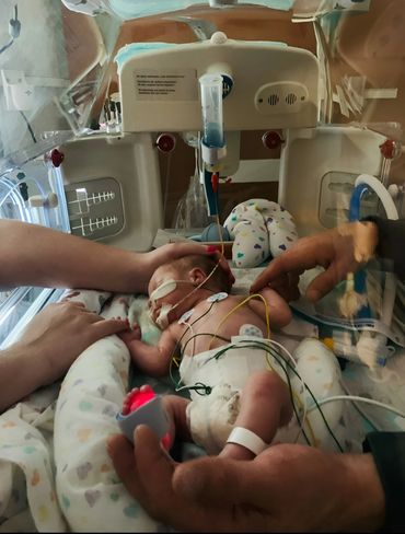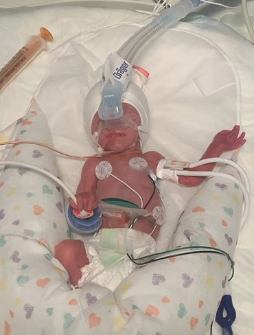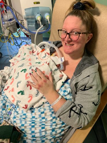 6 days later, around 11pm the decision was made to have an emergency C-section to save both our lives. Our son, Karter, was born on January 15, 2020 at 27 weeks weighing 1lb 10oz and 12inches. He was taken to the NICU with his father as they finished with me as I was still very sick. I did not hold our son for 26 hours due to being so sick.